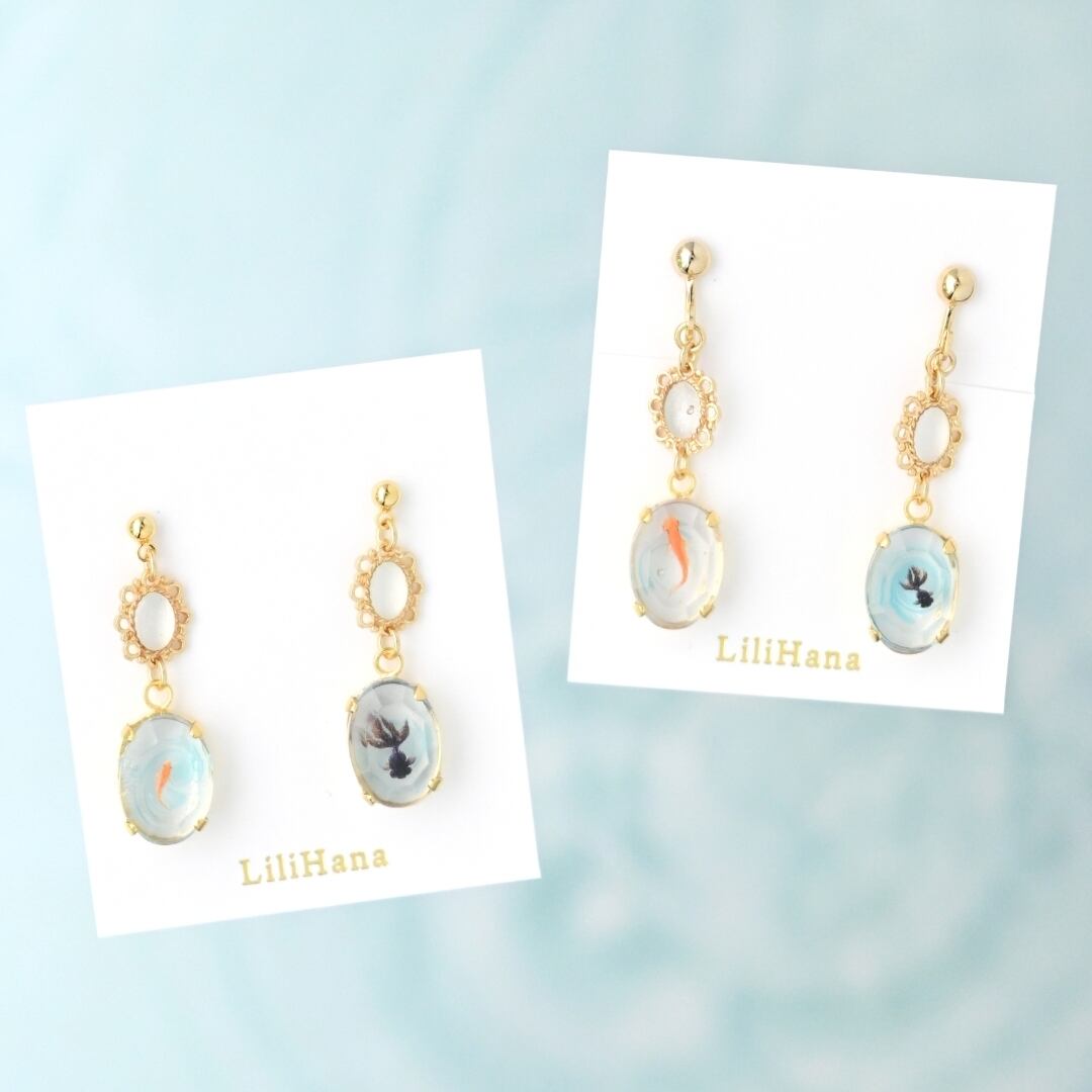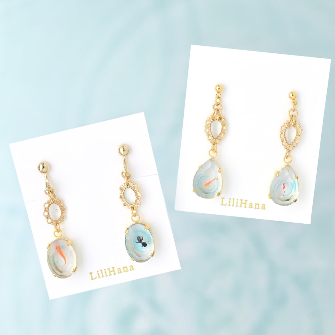 四季宝石 - 金魚すくい ピアス・イヤリング