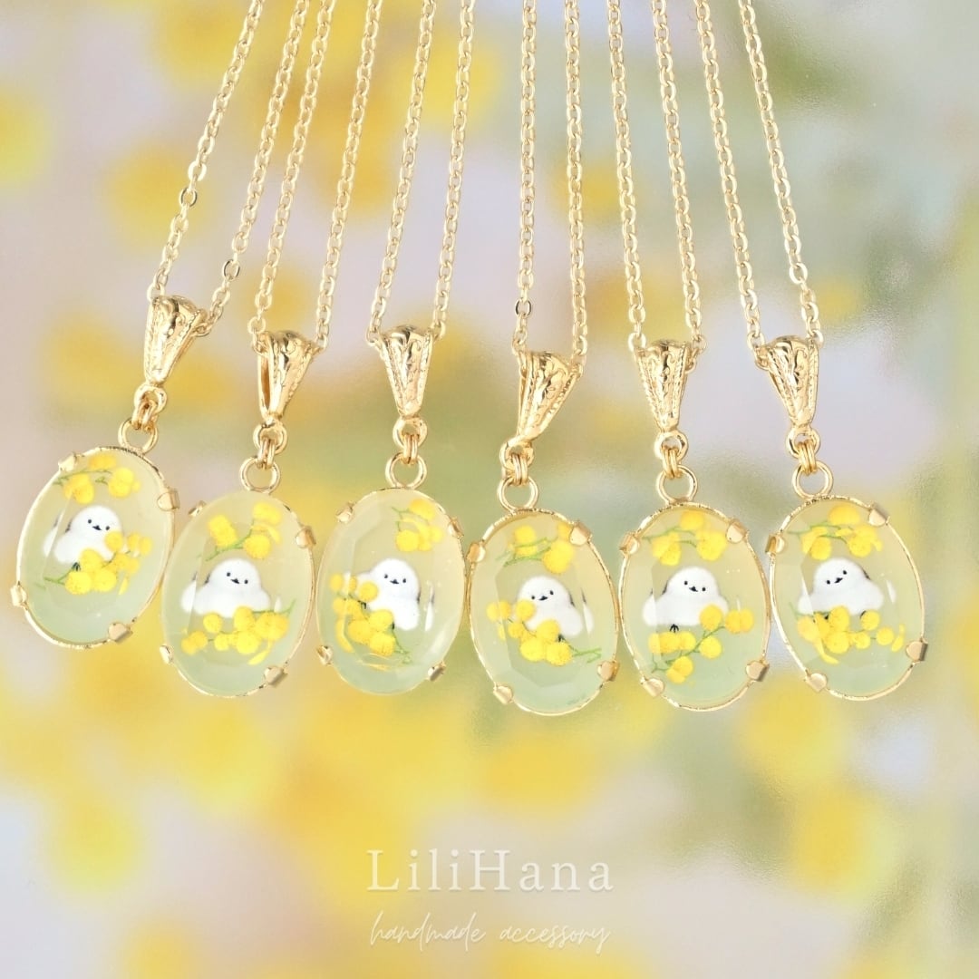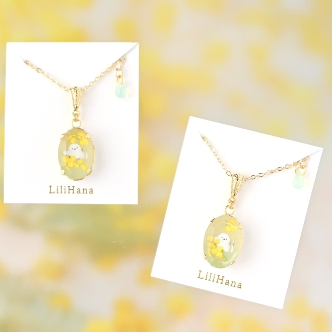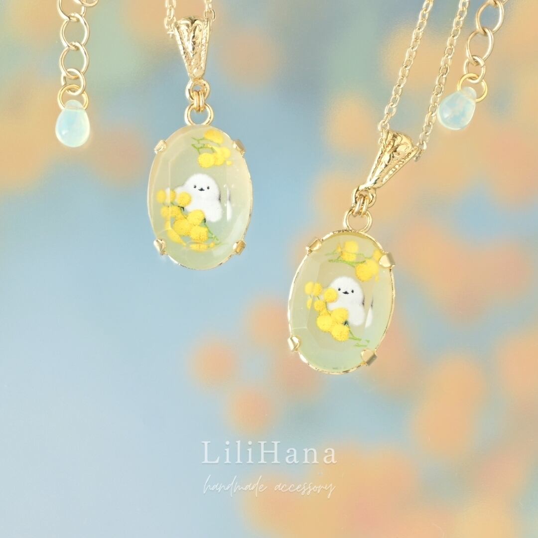 シマエナガとミモザ| 四季宝石のネックレス