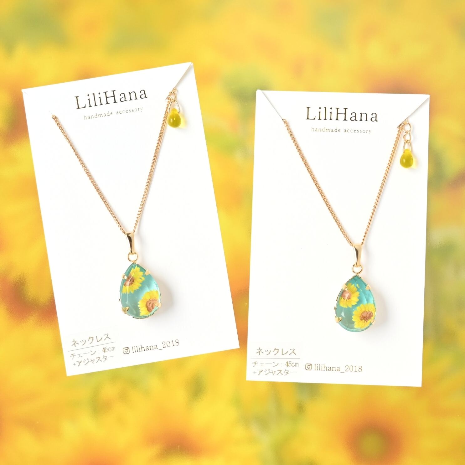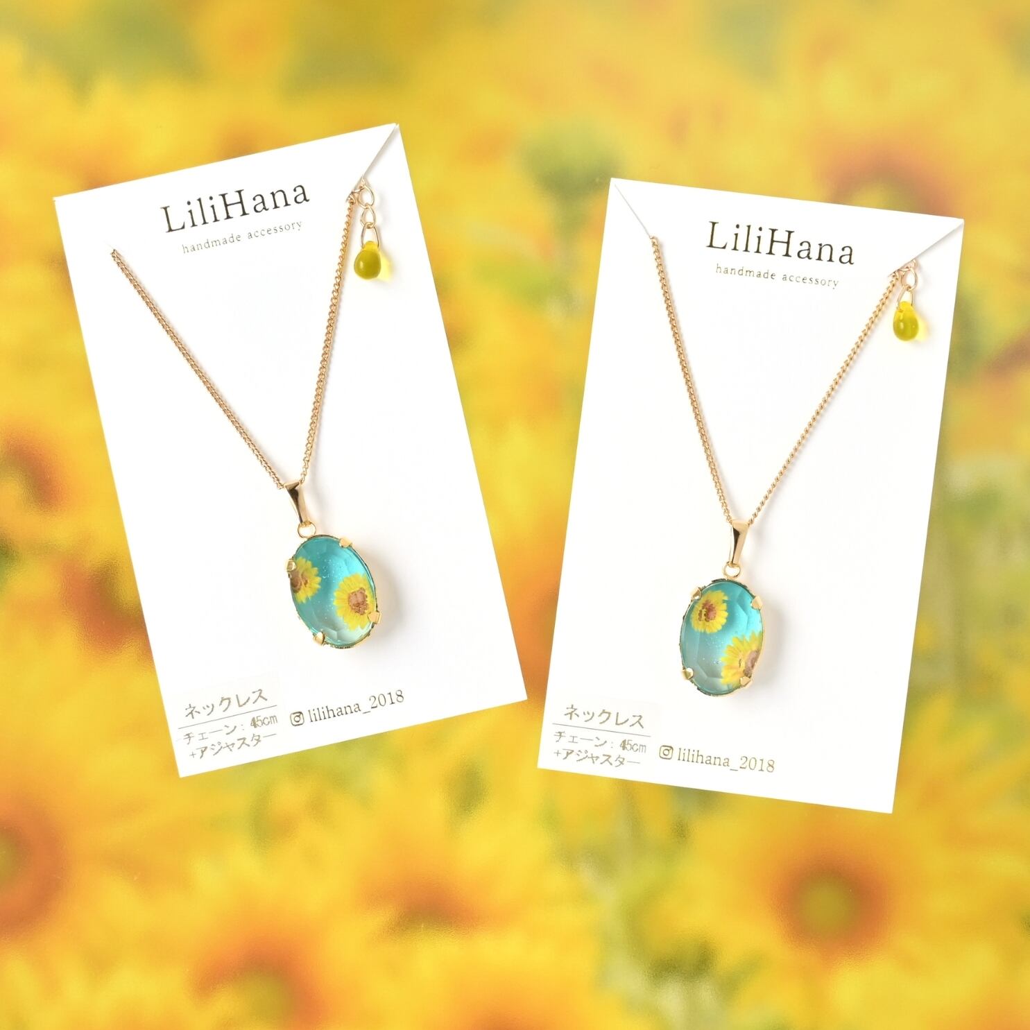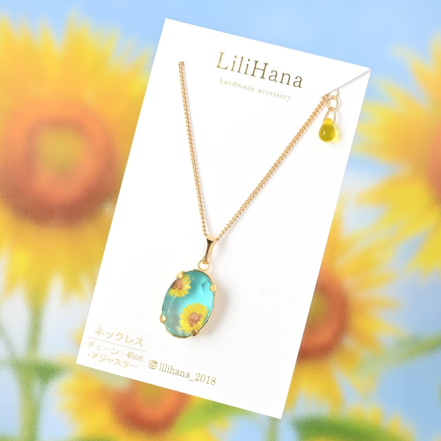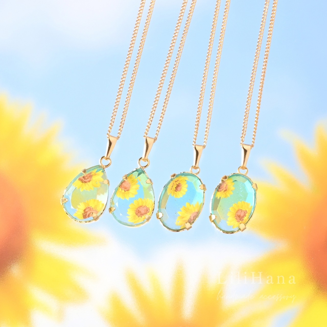 13mm×18mmのの宝石の中に、青空の下、太陽に向かって咲く向日葵を閉じ込めました