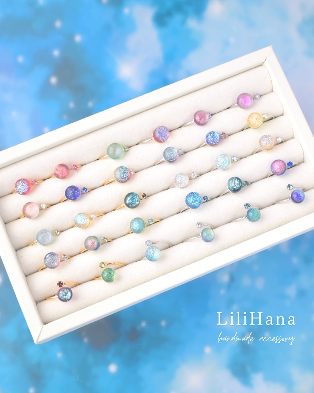 惑星達が一緒に仲良く宇宙を旅をしているイメージで製作した 愛らしいガラスのリングになります。